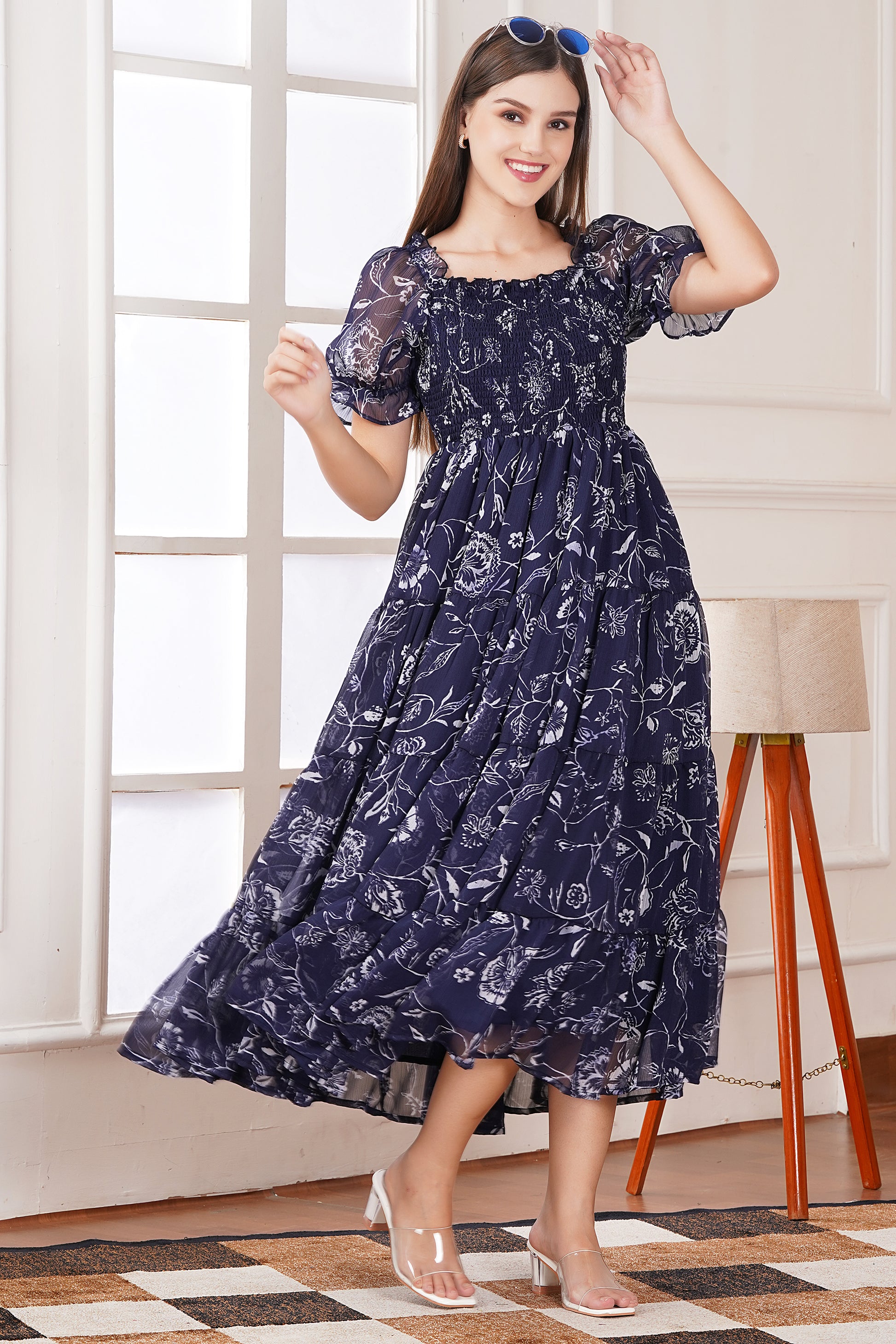 Kashvi Cloth Floral Print midi Dress for women - Multi Color Polyester Maxi Dress Stylish